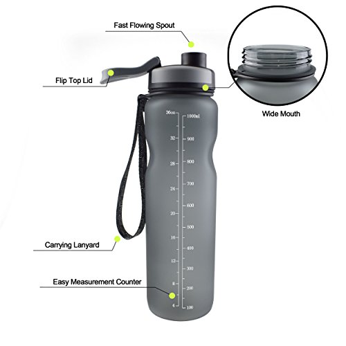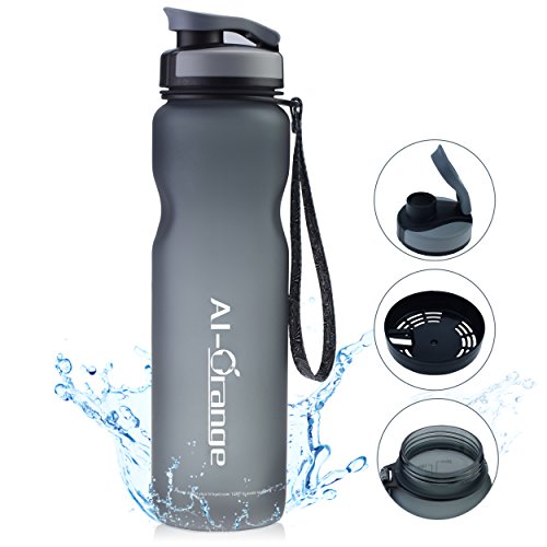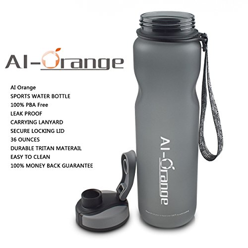 Sports Water Bottle AI-Orange Flip Top Leak Proof Non-Toxic BPA Free&Eco-Friendly Plastic - Ideal Summer Gift for Gym Yoga/Hiking/Running/Camping/Biking - 36oz 1000ml Large