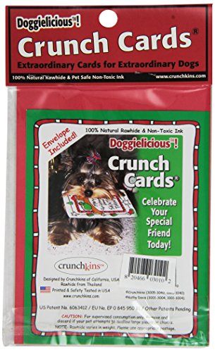 Product Description100-Percent Natural Rawhide “Crunch Card”, Non Toxic, water-based ink. Colors do not run Mailing Envelope Included.0
