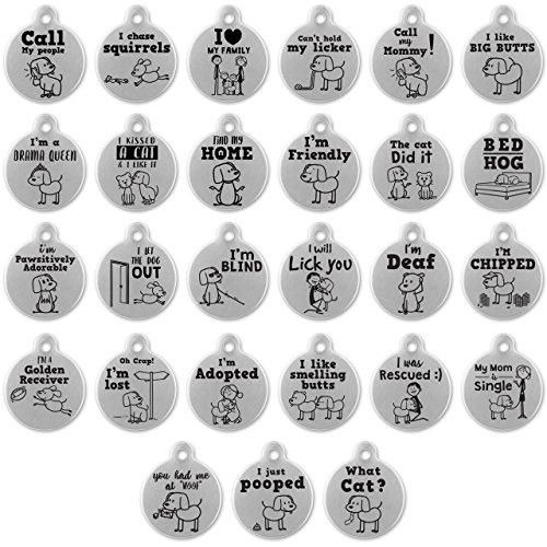 Studio : If It Barks Publisher : If It Barks Binding : Misc. Product Description Premium Quality Stainless Steel Pet ID Tag For YOUR Pet - *Guaranteed for LIFE!*The last pet ID tag you'll ever need... until your dog wants more gorgeous designs!There's a pet ID tag here for every pet lover:? I Chase Squirrels!? I Just Pooped? What Cat?? I Love My Family? I Was Rescued? I Let The Dog Out? And DOZENS More!Here's Some More Info About These Special Pet ID Name Tags:? Fully customizable on the back for up to 4 lines of 15 characters each!? Help keep your pet safe if it ever gets lost, with your address or phone number!? Available in 2 Sizes: Medium - 1"(25mm) and Large - 1.25"(38mm)? Each tag includes a slip ring to make it easy to attach to your pet collar? Made out of premium tumbled stainless steel - made to last forever!? Using the best laser engraving techniques; providing a deep engraved surface that lasts for years!? Made here in the USA for top quality controlHow to Create The Perfect Pet ID Tag for Your Beloved Pet:- It's easy! First, choose your design from the images above.- Click 'Customize Now' on the right- Enter up to 4 lines of text- We recommend including your pet's name, and your contact info for safety- Choose your size: Medium (1") or Large (1.25")- And that's it! Your pet now has a gorgeous new pet ID tag!Give your pet a permanent design to wear, and keep them safe - add the If It Barks Pet ID Tag to your cart now! 0