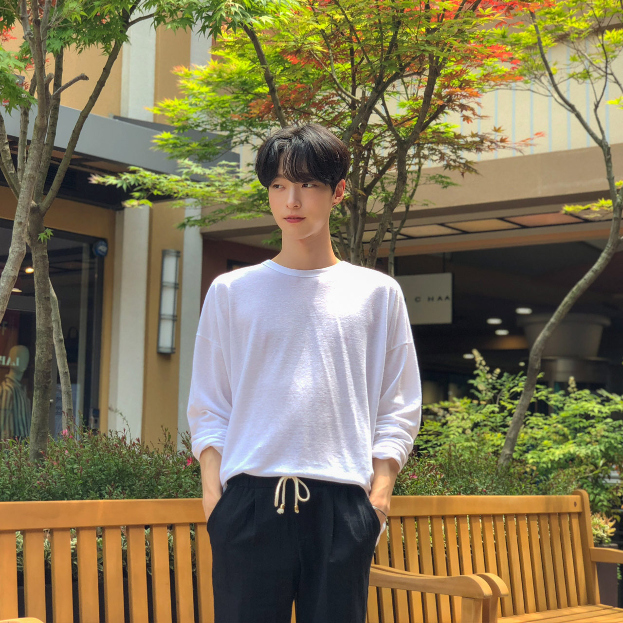 여름철 입기좋은 얇은 린넨 긴팔 티셔츠 입니다.