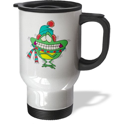 3dRose tm_103903_1 Cute Cold Shivering Froggy Frog Travel Mug, 14-Ounce, Stainless Steel