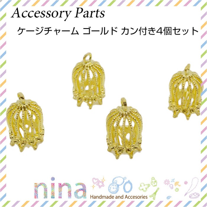■商品名:ケージチャーム ゴールド カン付き 4個セット