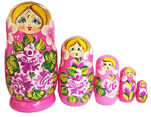 -. Feature : Pink Rose Color Doll for girls / Russian Matreyshka Matreshka Matryoshka Matrushka Babushka / Hand Carved Hand Painted / Hand Carved and hand Painted. Made in Russia. / 5 Nested 7 inch tall