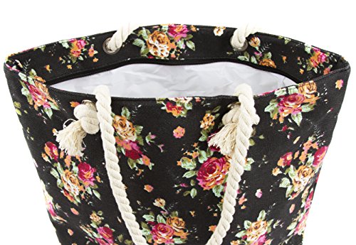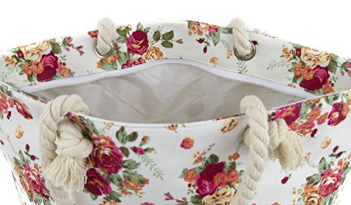 -. Feature : 70% cotton/30% polyester canvas with red twisted rope handle / Top-side zipper to secure your contents / Polyester lining / 9" shoulder drop for effortless carry / 17" wide, 13" height, 5" depth