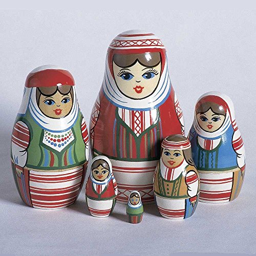 -. Feature : Hand Lathed & Hand Painted Wood / Unique Set of 6 Nesting Dolls / Russian Folk Art Figures Decorated in SP.R.Ing Attire / Matryoshka Dolls - No Two Sets are Alike