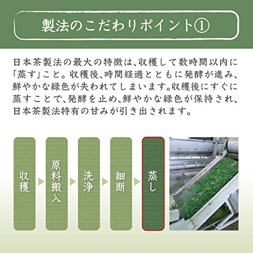 本商品は緑茶生産農家と契約し、日本で古くから伝承されている“日本茶製法" で乾燥させています。