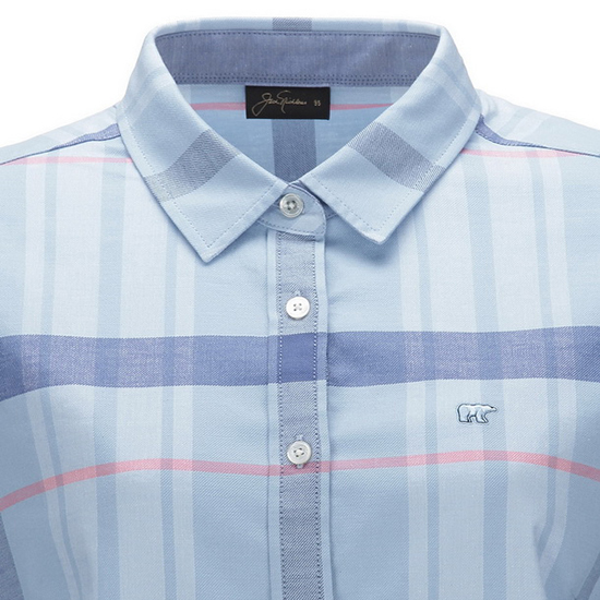 - 산뜻한 컬러감의 타탄 체크 패턴을 적용한 여성 셔츠.