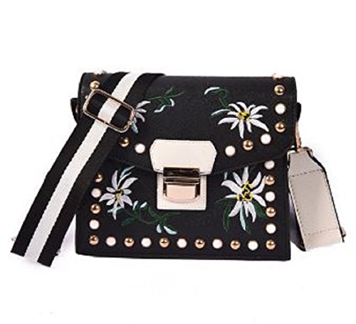 -. Title : 【WhiteClown】ショルダーバッグ レザー スタッズ 花柄 刺繍