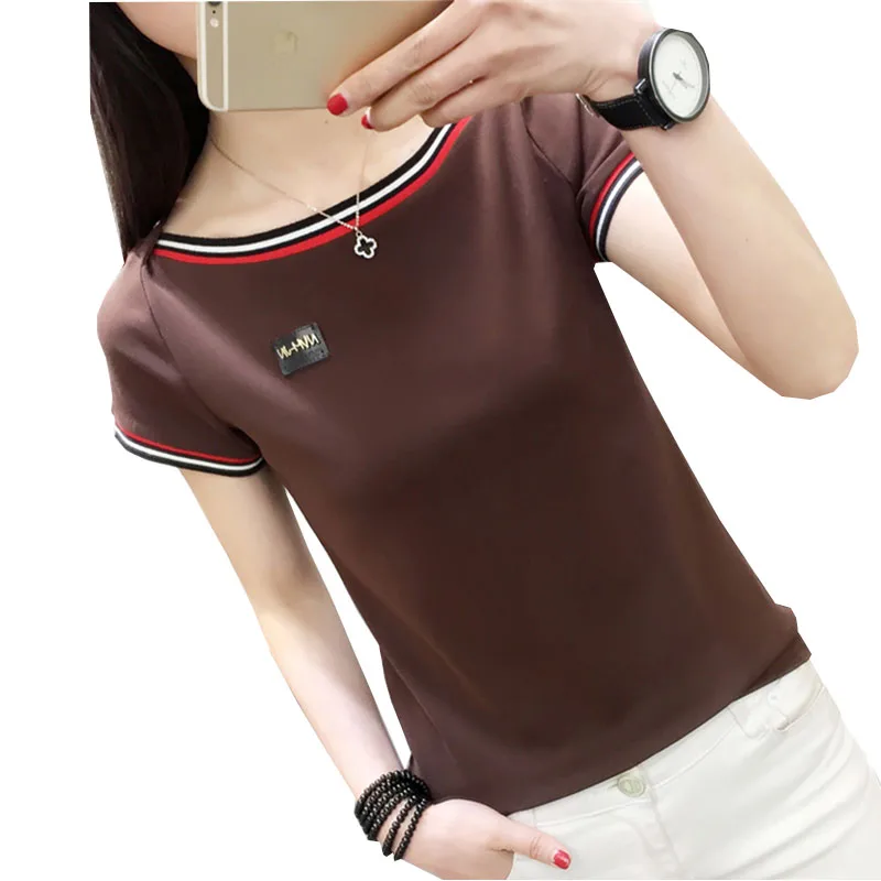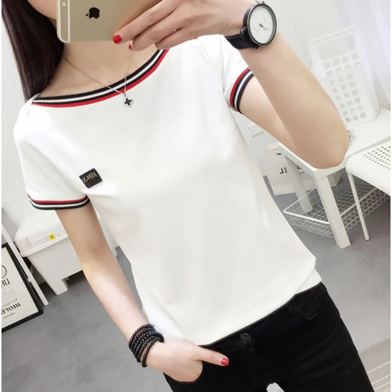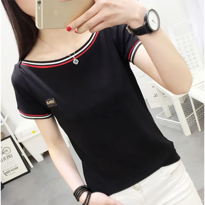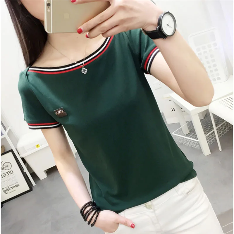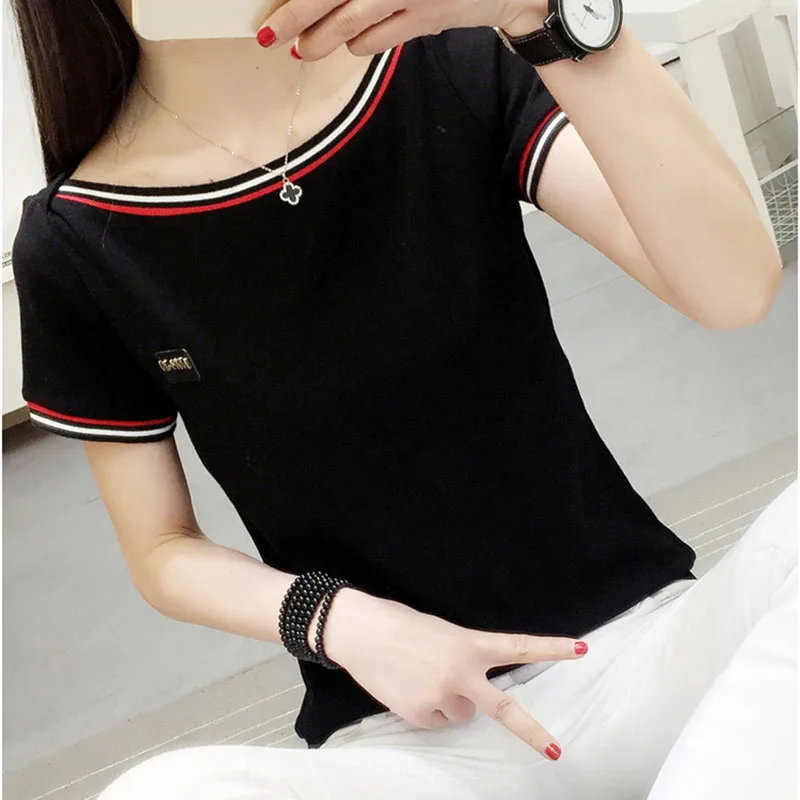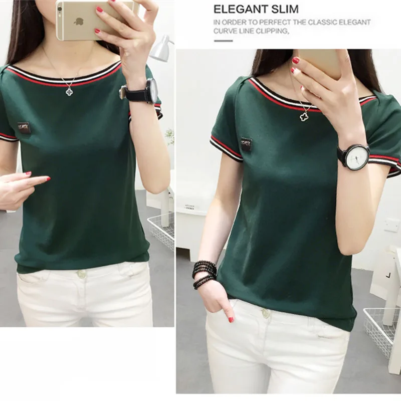 Model Number: 2017 tshirts femme Women Fashion T-shirt Short Sleeve Casual Striped B