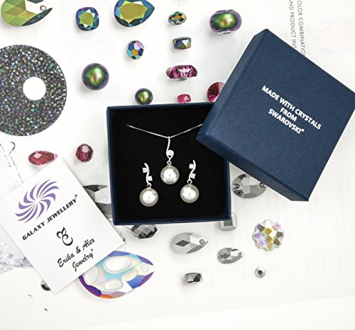 -. Feature : YOU DESERVE A TIMELESS PIECE OF JEWELRY! - When it comes to accessories that define your style and help you express your emotions, you should never compromise. The Erika & Alex Jewelry premium 925 rhodium white gold plated sterling silver jewelry set with Swarovski Simulated White Pearl Crystals are here to dazzle everyone with their elegant design and unique details! / LIFE'S TOO SHORT FOR BORING EARRINGS! - Our eye-catching jewelry set is meticulously handcrafted using superior-quality sterling silver, flawless Swarovski Simulated Pearls in order to boost your confidence and perfectly complement your every outfit! / STRAIGHT FROM THE WORLD'S FASHION CAPITAL TO YOUR JEWELRY BOX! - Every single item is designed and handcrafted by qualified and creative jewelry designers, right here in the center of London, the world's fashion capital. You'll become a trendsetter wearing our mesmerizing earrings! / NOTHING SAYS "I LOVE YOU" BETTER THAN A CHARMING JEWELRY SET! - Surprise that special lady in your life with the most delicate, fascinating and eye-popping high quality sterling silver jewelry set and take a special place in her heart! / TRADITIONAL BRITISH DESIGN WITH A PINCH OF WHIMSICAL CREATIVITY! - Our extravagant and breath-taking silver jewelry set combine the timeless design of British jewelry masters with a touch of modern playfulness. This set is sophisticated, stylish and precious, just like you!