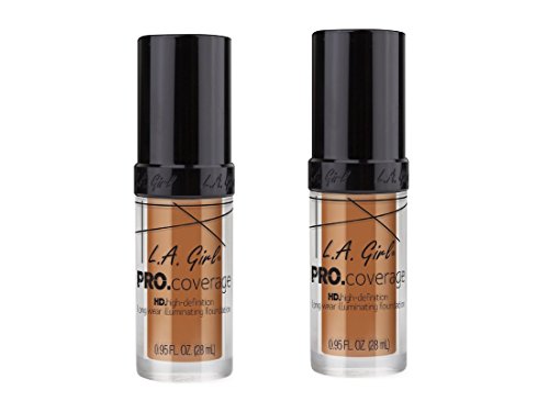 PACK OF 2 L.A. Girl Pro Coverage Liquid Foundation, Warm Caramel
