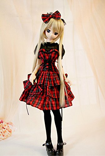 -. Title : ドルフィードリーム 1/3 サイズ ドール用お洋服 赤いチェックのドレス
