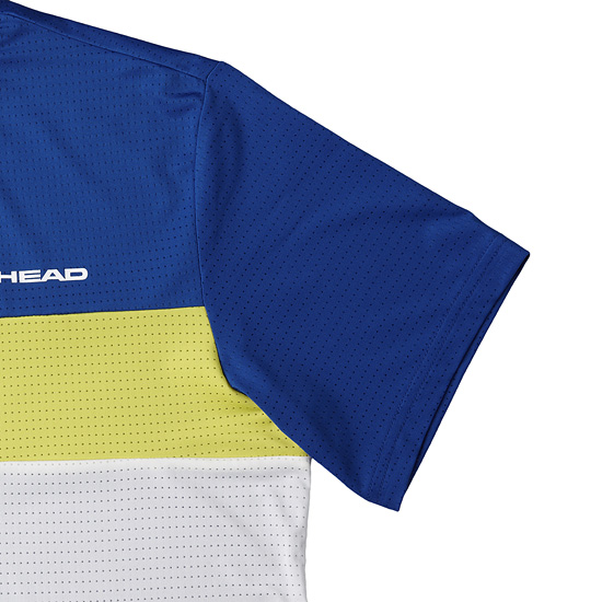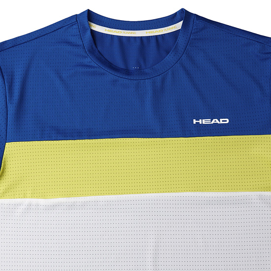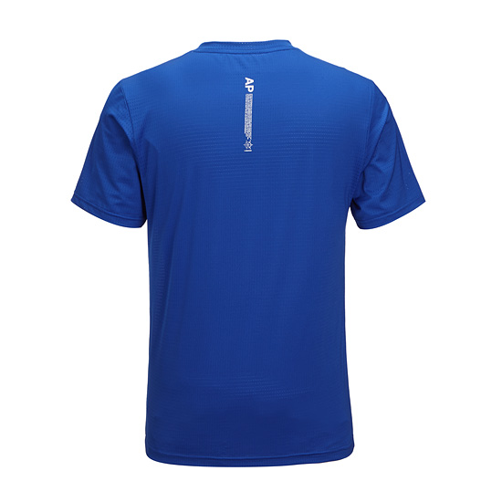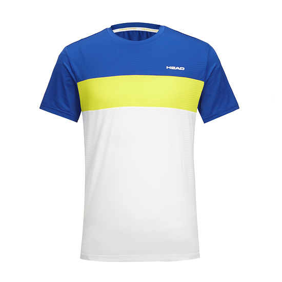 - 3단 컬러블럭의 러닝 라운드로 액티브한 디자인의 남성 티셔츠.
