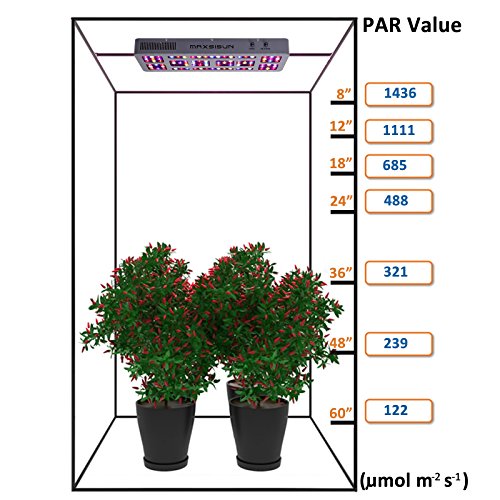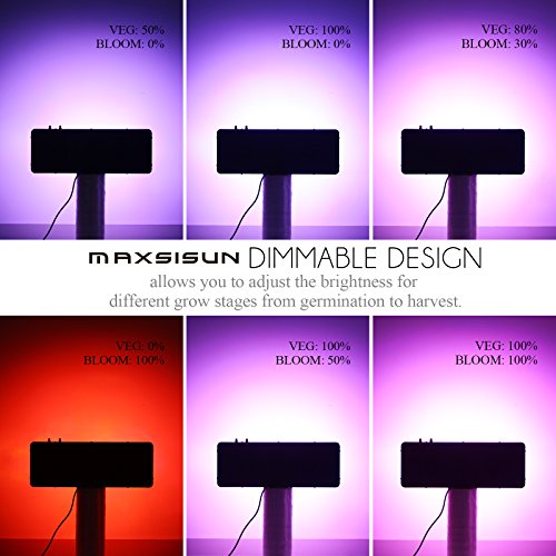 -. Feature : MAXSISUN LED Grow Light, 12-band Dimmable/Programmable Full Spectrum for Indoor Hydroponics Plants Veg and Flowering
