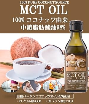 ココナッツ由来100% MCTオイル 170gは食品として楽しんで頂けますように少しだけ有機バージンココナッツオイルを5%を配合し、まろやかなほど良いココナッツ風味に仕上げました。