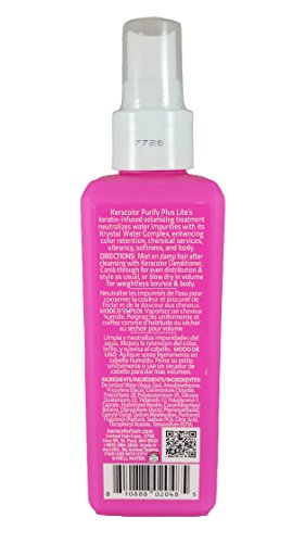 -. Binding : Misc. -. Brand : KERACOLOR -. EAN : 0810888020485 -. Feature : Keratin based leave-in treatment / Bodifying attributes when blow dried into hair for volume / Neutralizes chlorine and trace materials to preserve color and vibrancy and stop mineral build up / Preserved color and vibrancy; provides shine, softness and detangling / Restores hair to natural hair state of 4.5 PH, sealing cuticle and locking in color -. Label : United Hair Care -. Manufacturer : United Hair Care -. MPN : 3174877 -. PackageQuantity : 1 -. PartNumber : 3174877 -. ProductGroup : Beauty -. ProductTypeName : BEAUTY -. Publisher : United Hair Care -. Studio : United Hair Care -. Title : Purify Plus Lite, Leave-In Conditioning Treatment -. UPC : 810888020485