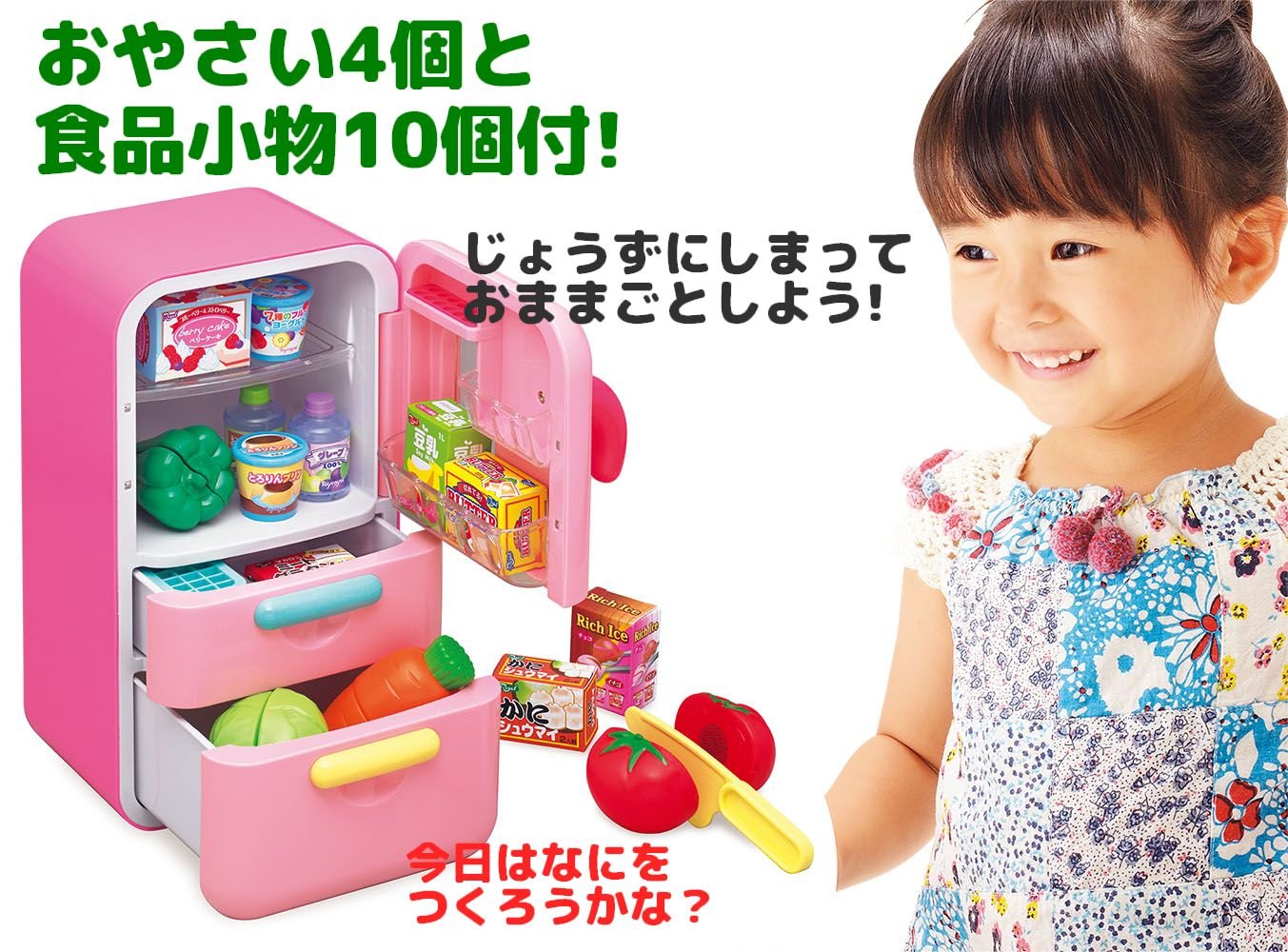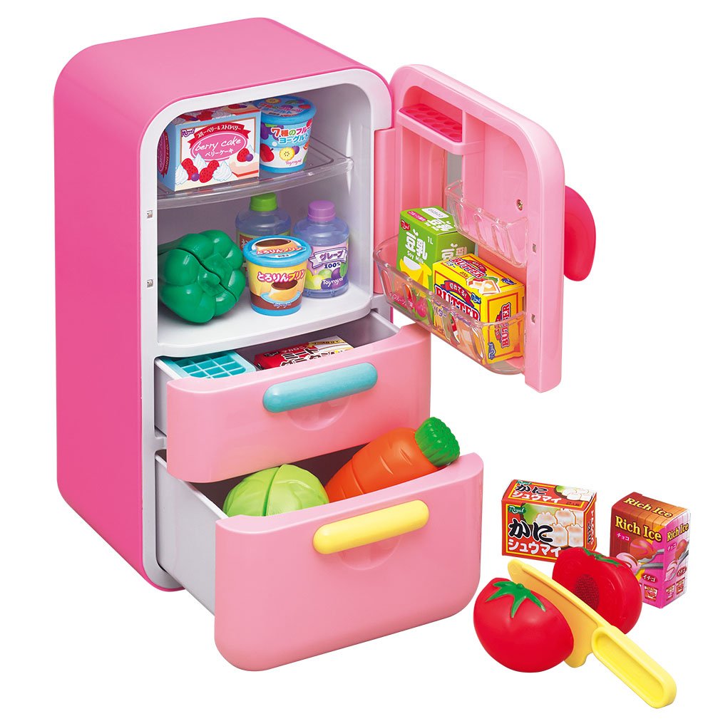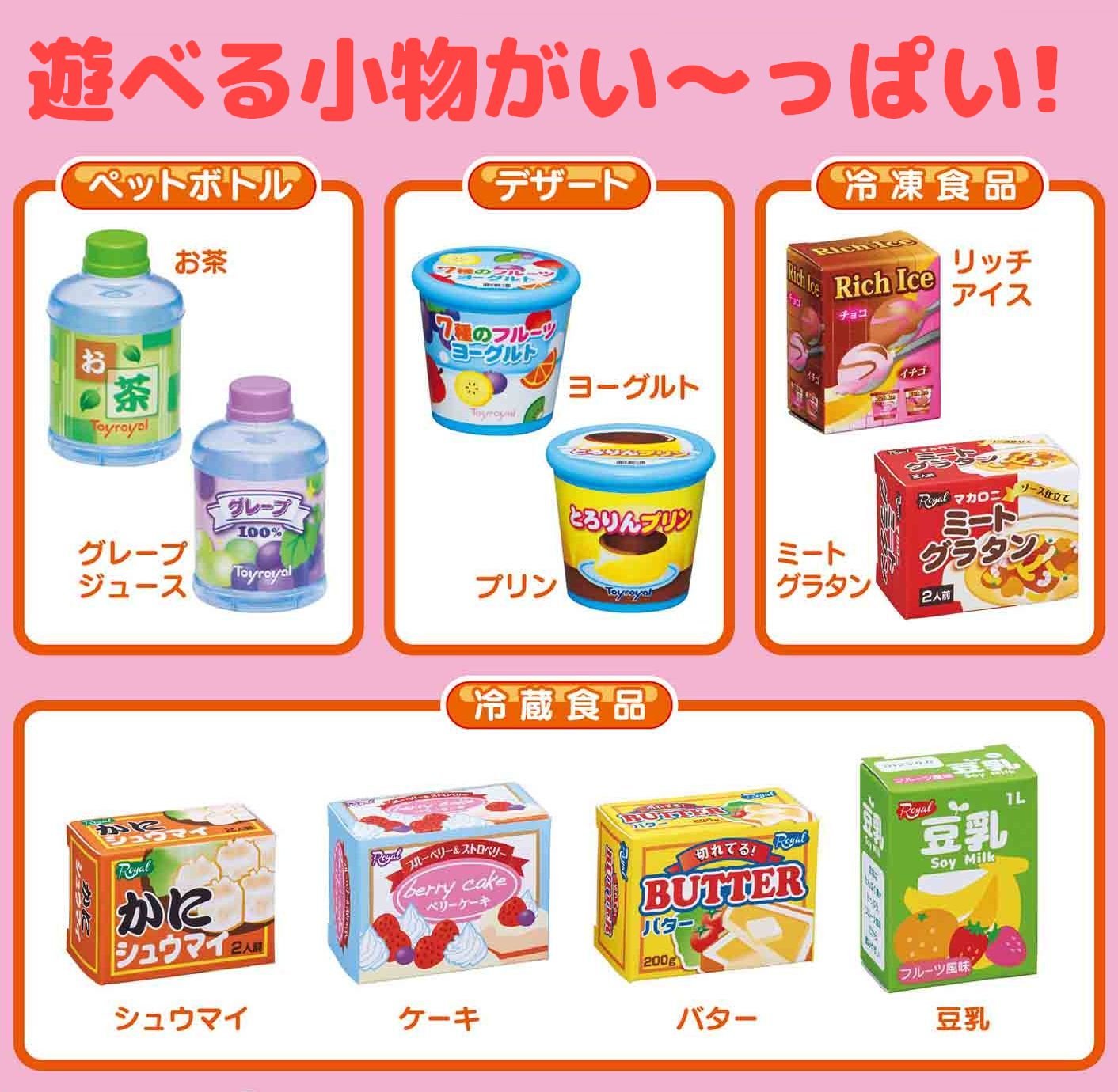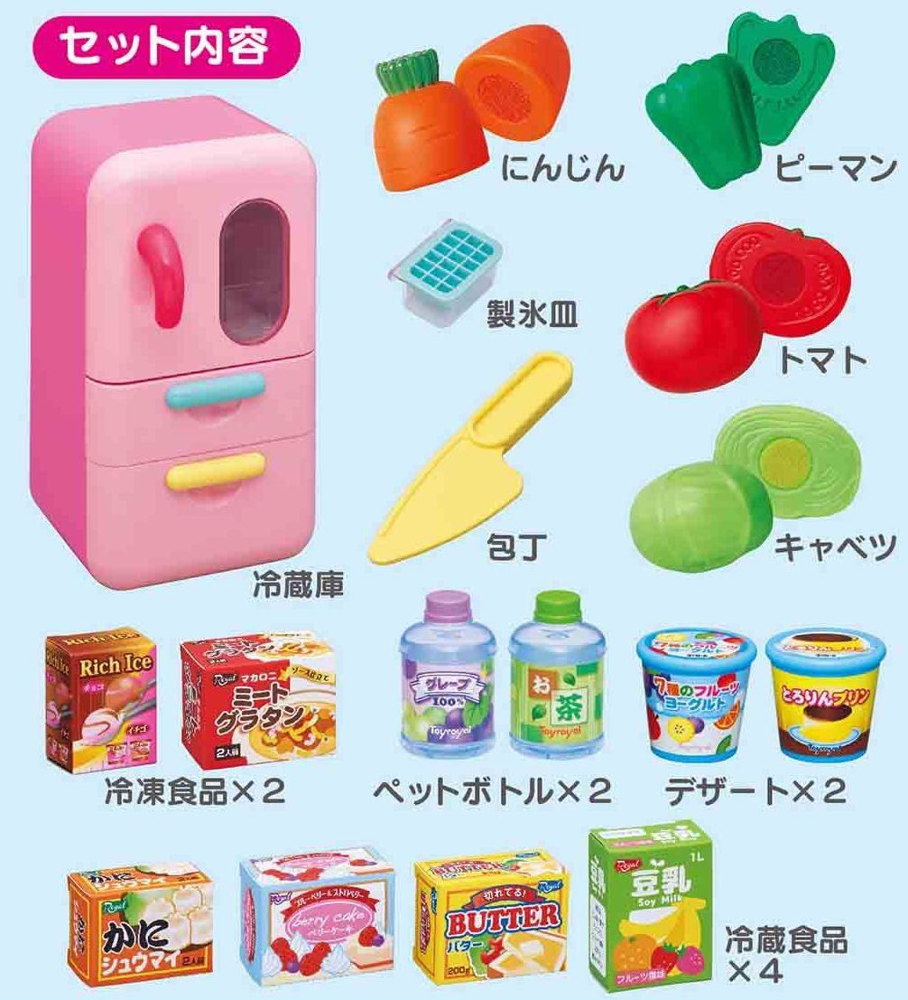 <Set contents> Refrigerator, ice making dish, carrots, peppers, tomatoes, cabbage, knives, 2 frozen foods, 2 plastic bottles, 2 desserts, 4 refrigerated foods.