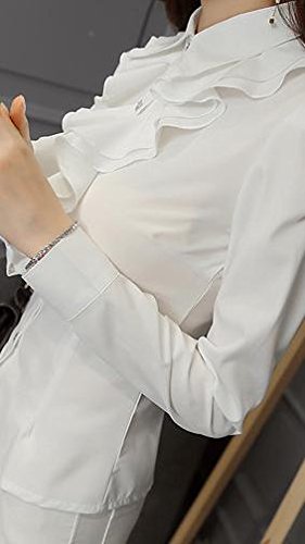 -. Feature : 清潔感とエレガントが程よく合わさったフリルブラウスです。上品で可愛く、高見えするホワイト。ビジネスやフォーマルの場面ですごく重宝します / ビジネス 通勤 フォーマルな場面においても、さりげなく上品で仕事でもカジュアルなお呼ばれの席でも、きれいめシャツとしての着こなしもできる可愛いブラウスです。 / パンツスタイル、スカート派問わずに、着こなして頂けます / サラッとした着心地。デニムなどとカジュアルに、ジャケットと合わせると、よりフリルをアピールできます / サイズは商品画像、商品説明に記載させていただきます。