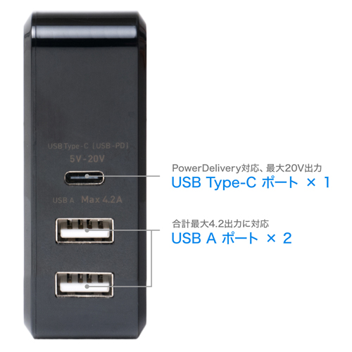 ●USB PDに対応した、高出力なUSB-ACアダプタ
