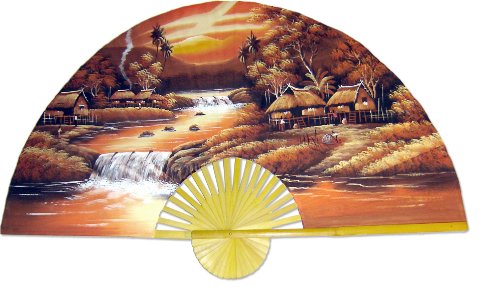 Medium 40" Folding Wall Fan -- Sunset River -- Original Hand-painted Wall Art
