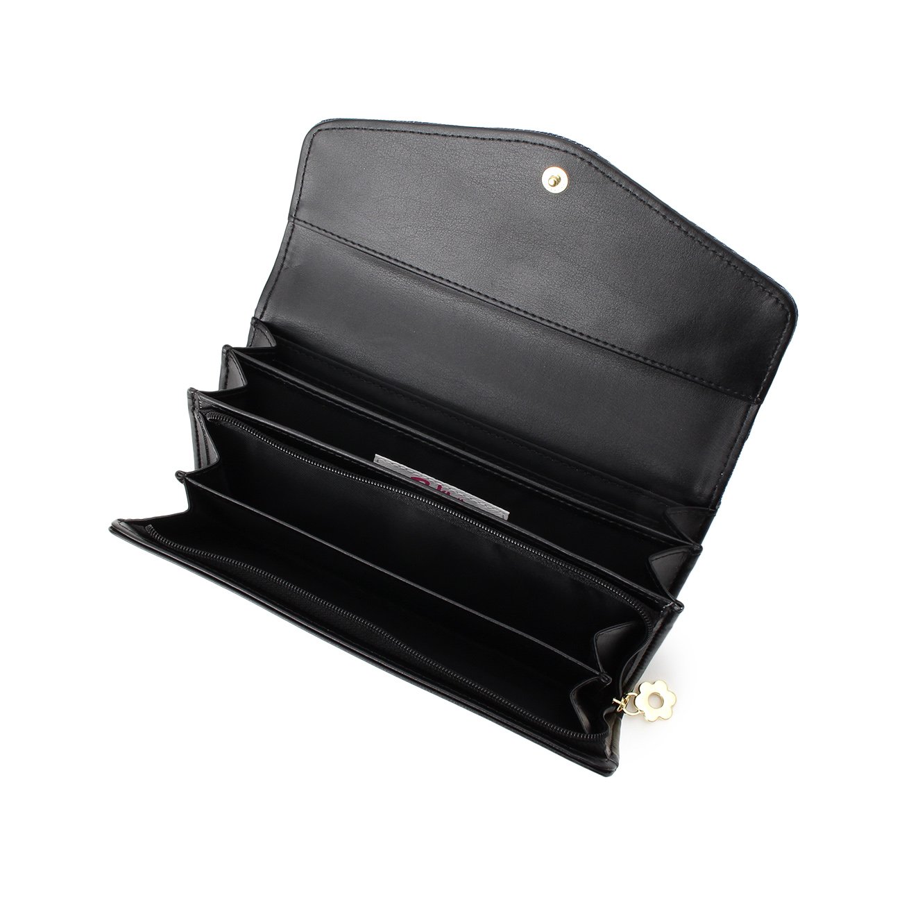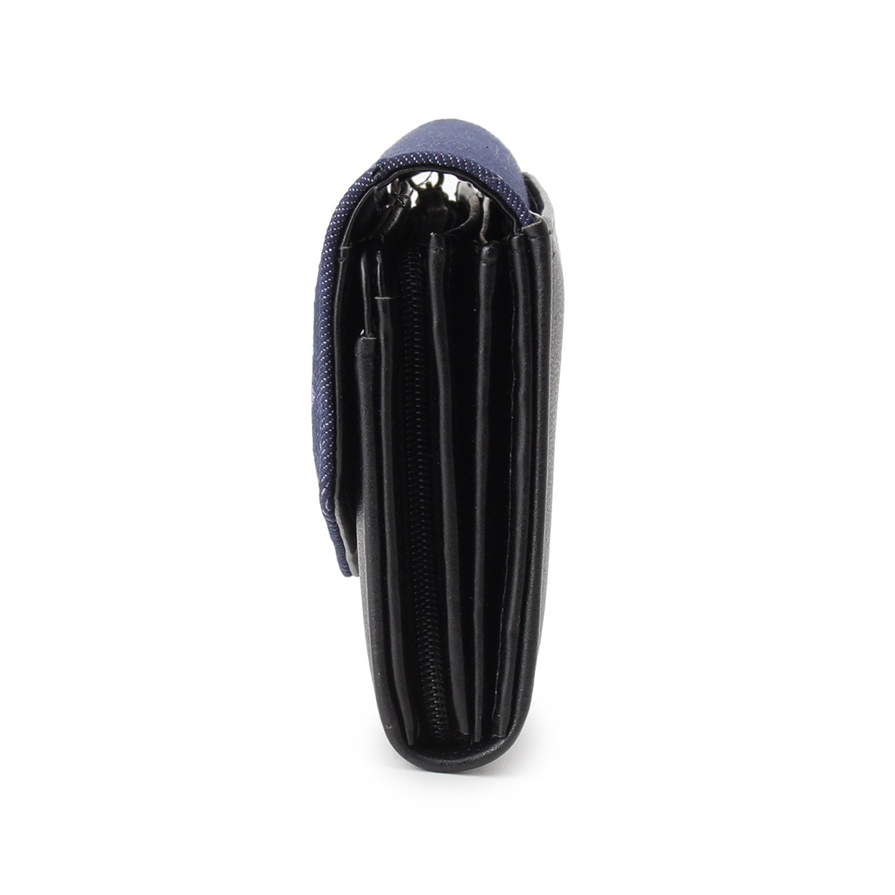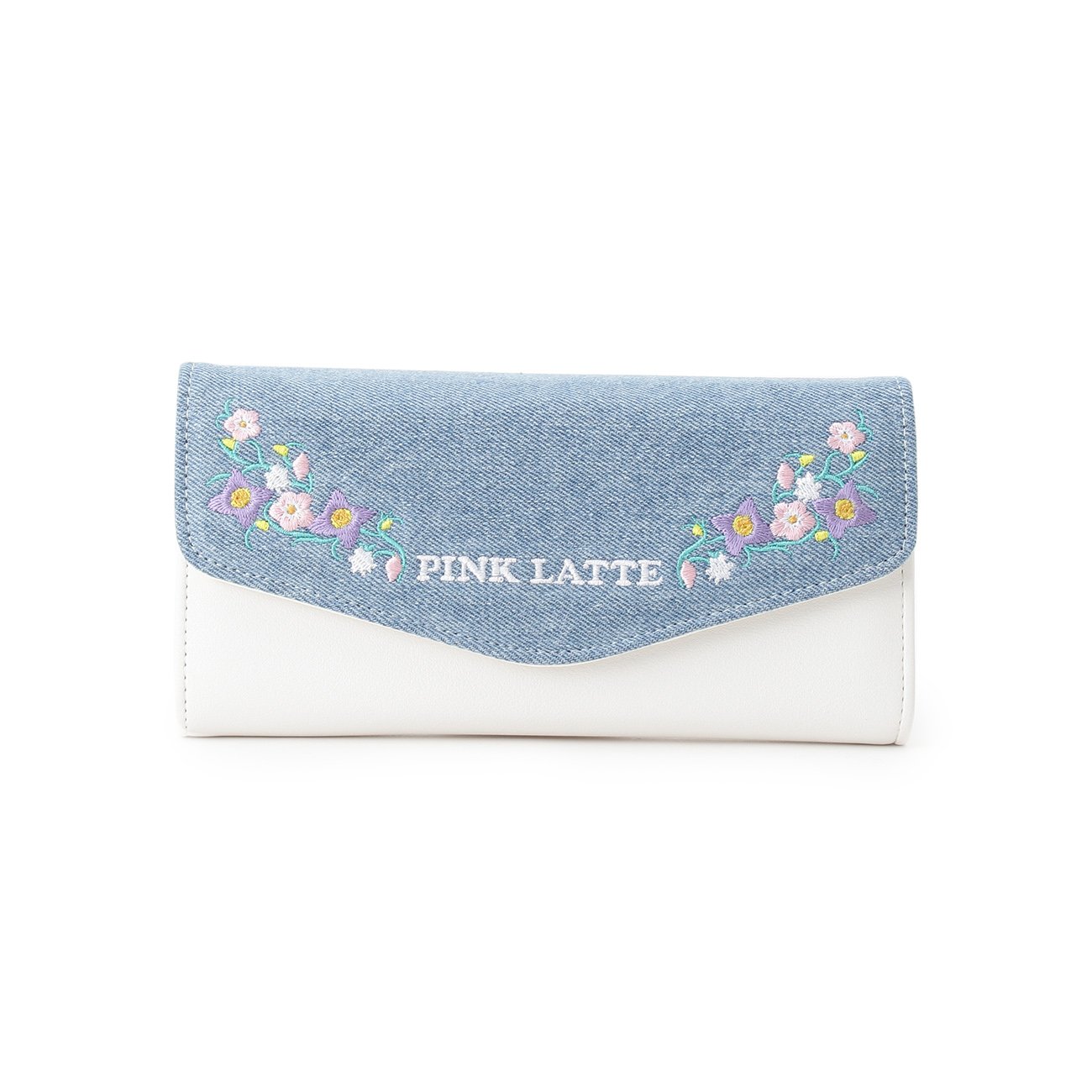 Feminine long wallet with colorful floral embroidery on the flap.