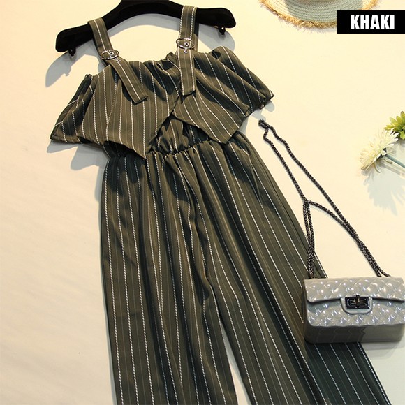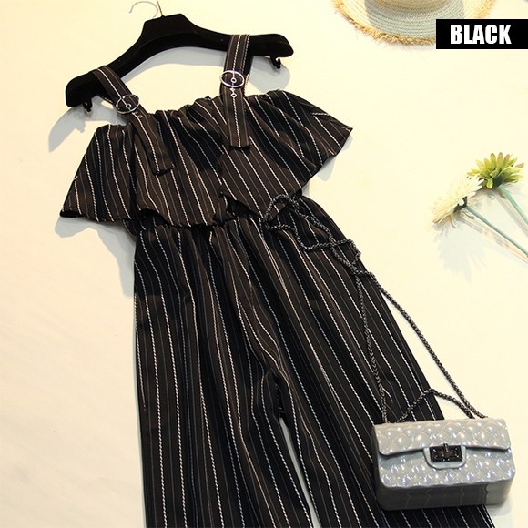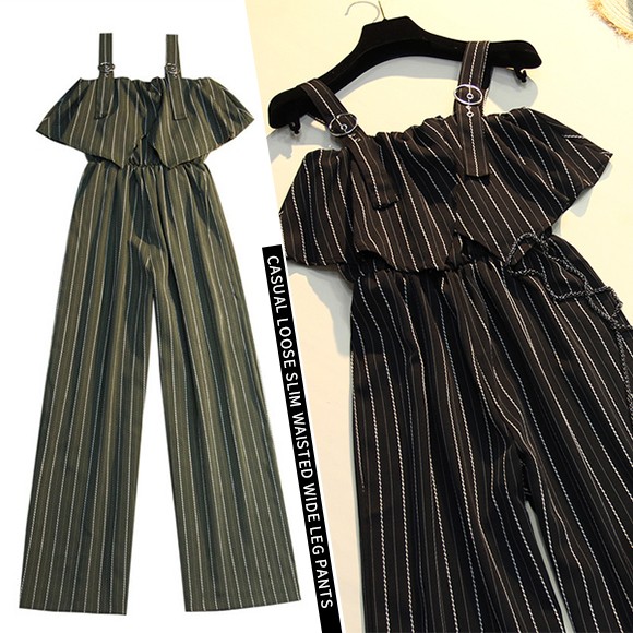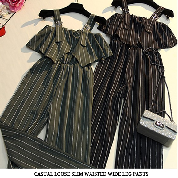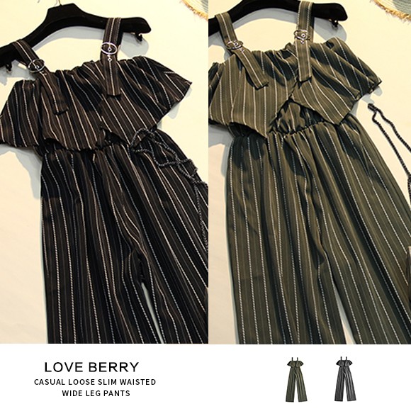 スタイリッシュなストライプ柄のワイドパンツサロペットです!