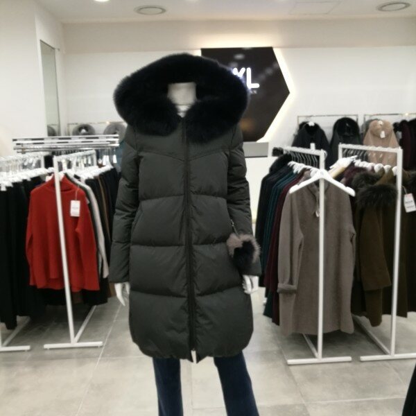 구스다운의 장점 다 아시죠? 일단 가벼워요. 따뜻해요. 모자에 털은 여우털 아주 풍성해서 고급스러워요. 기장은 하프정도로입기 딱 좋아요.