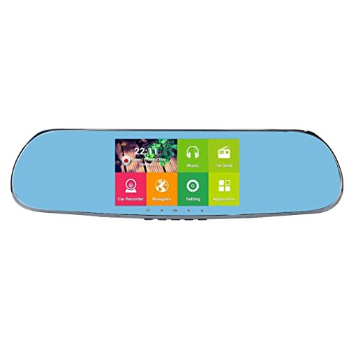 -. Feature : This dual lens dash camera is mounted to the rear-view mirror of your car easily, it with android 4.4 OS! It is not only a car DVR ,it is a GPS navigation too. / Installed over, it works just like a regular rear-view mirror, and has a Full HD 1080P camera recording everything in the road ahead! / Flexible front lens with 170 degree wide angle allows you to adjust the camera angle easily in real-time, and 5.0'' inch IPS capacitive touch screen can be turned off while driving to avoid distraction. / 5.0'' TFT HD capacitive touch screen, you just touch the screen to set what you want to do, convenient and efficient / Support 24 hours Parking monitoring ,Connect car battery with parking monitoring cable (is included), Even though the car was turn off, the machine can still record video, to achieve 24-hour surveillance