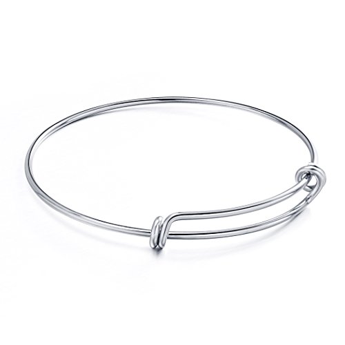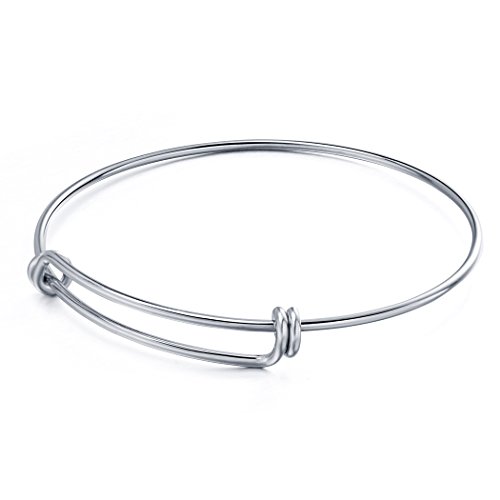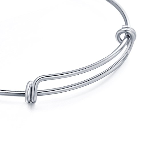 Romance Jewelry 6 Pieces Expandable Stainless Steel Wire Bangle Bracelet Blanks Double Loop Style for DIY Jewelry Making, 2.6 Inches