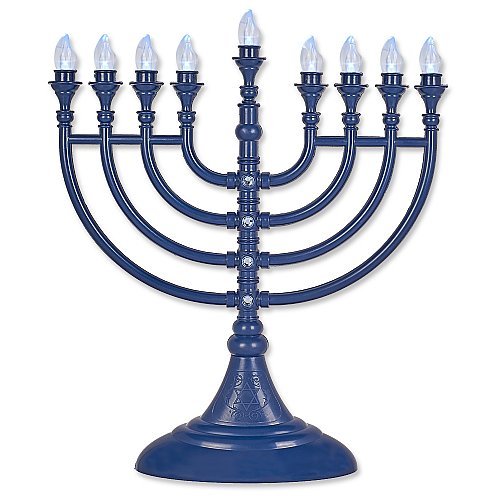 [Product Information]- Traditional LED Electric Blue Hanukkah Menorah With Crystals - Battery or USB Powered - Includes a Micro USB 4' Charging Cable