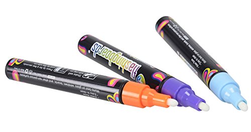 Feature : Beautiful florescent marker pens / Liquid chalk-like pen easily erases off / Works on glass, windows, or dry erase boards / Pack of 8 eye-catching neon colored liquid dry erase pens / Create bright, bold messages that can be quickly replaced with the change in your daily soup special, markdown price, or shift in your child's schedule