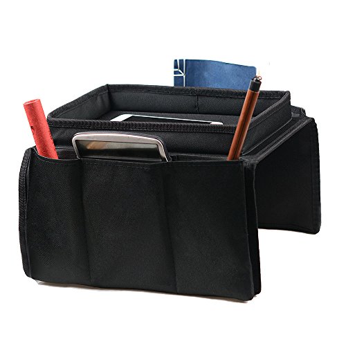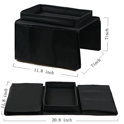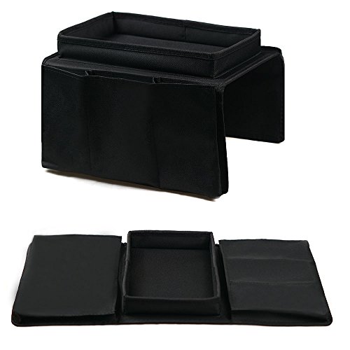 A Little Lemon Remote Control Holder Magazine Rack ,Arm Rest Organizer with Table-Top,Sofa Couch Chair ArmrestOrganizer, Fits for Phone, Book, Magazines(Black)