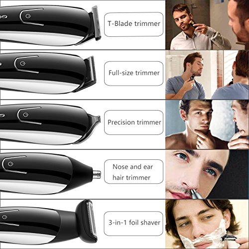 - [Multigroom All-In-1]: 9 attachments for all-in-one face and head styling: T-blade Trimmer, Full-size Trimmer, Precision Trimmer, Nose/Ear Trimmer, 3-in-1 Foil Shaver, 4 Hair Trimming Guards. All the attachments are easy to detach and rinse.