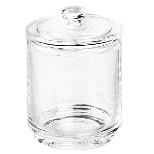 mDesign Bathroom Vanity Glass Storage Organizer Canister Jars for Q tips, Cotton Swabs, Cotton Rounds, Cotton Balls, Makeup Sponges, Bath Salts - Pack of 2, Clear