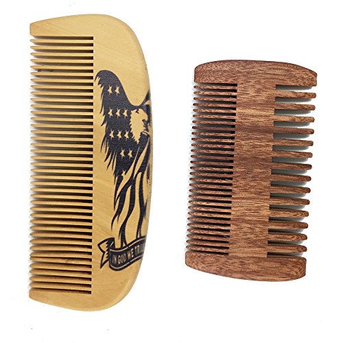Handmade and Premium Bidirectional Beard Brush Wooden Comb- Best Quality Pocket Size Comb- For Uniform Beard And Mustache Growth and Eliminates Tangles, Frizz and Static,Design American Flag Eagle
