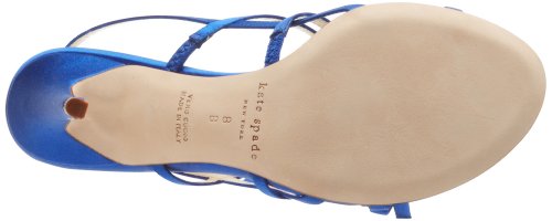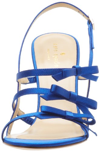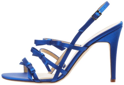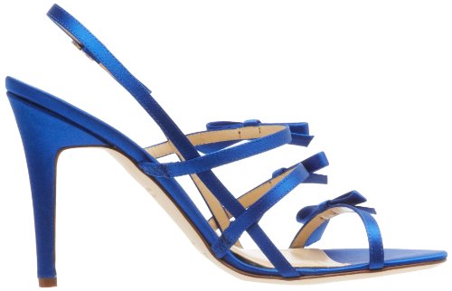 Dress sandal featuring trio of slim vamp straps adorned with decorative bows