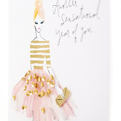 Studio : Hallmark Marketing Company, LLC (Office) Publisher : Hallmark Marketing Company, LLC (Office) Binding : Office Product Product Description Celebrate the birthday of a close friend for family member with this card featuring an illustration of a women in a pink skirt, accented with gold sequins and sparkles. The message on the front of the card reads, "Another sensational year of you." Open the card to reveal the inside message, "Now that's something to celebrate." This card measures 5 inches by 7.2 inches made with high quality cardstock paper; an envelope is included. All Hallmark cards are made with paper from well-managed forests. Signature offers stylish shoppers a curated and considered line of upscale and unique cards and gifts that reflect their personal style and make an immediate and lasting impression. Hallmark was founded in 1910 when 18-year-old J.C. Hall arrived in Kansas City, Missouri, with a couple of shoeboxes of postcards under his arm and the American dream in his heart. Hallmark greeting cards are sold online and in nearly 40,000 retail stores across the globe and people continue to recognize the iconic Hallmark brand as "the very best." 0
