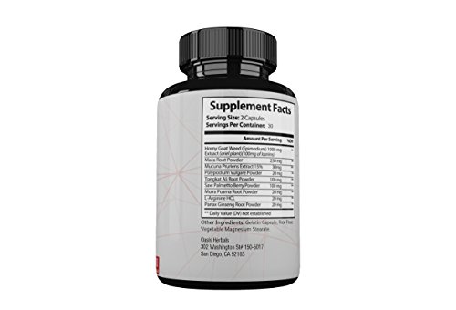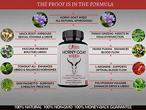 The powerhouse in a capsule Known in traditional Chinese medicine as "yin yang huo", Horny Goat Weed has been used for more than 2,000 years to promote blood flow leading to greater energy, enhanced libido and stress reduction. Our exclusive blend includes Maca Root Powder, Saw Palmetto Berry Powder and L-Arginine HCL, giving Oasis Herbals Horny Goat Weed Supplement a powerful combination of vitamins, minerals, enzymes and antioxidants. All-natural, safe and easy to use Horny Goat Weed is an herb that is naturally rich in icariin, a flavonoid that exhibits far-ranging biological benefits to the heart, bones and a variety of other organs. It is believed to enhance testosterone levels and act as a natural aphrodisiac to promote sexual desire in both men and women. Taken daily before a meal, Oasis Herbals Horny Goat Weed will improve your stamina and endurance for workouts, romantic encounters and all the fun activities that you enjoyed in your youth. Customer Satisfaction is our top priority We insist on the highest quality materials and manufacturing processes to bring you these premium Horny Goat Weed Capsules. They are processed in the USA, at FDA-approved facilities that adhere to rigorous quality controls. GMP certified facilities and 3rd party testing ensure that you always receive pure, consistently potent dietary supplements. We confidently offer a 60 Day Money Back Guarantee to ensure your peace of mind. To boost your energy levels and supercharge your stalled libido, add Oasis Herbals Horny Goat Weed Supplement to your cart today. 0 |