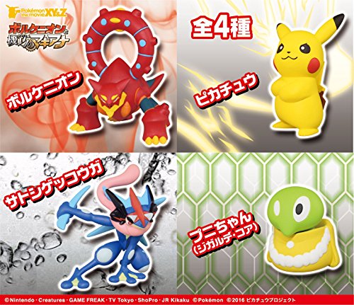 全4種よりメーカー規定の比率に従い封入。・TVアニメ『ポケットモンスターXY&Z』に登場するメインポケモンたちの劇中のポーズをモチーフにしたフィギュアです。2016年夏に公開する劇場作品のメインポケモン『ボルケニオン』もラインナップしています。・フィギュアのサイズは高さ43~50mmで、デスク周りに飾って楽しみます。・フィギュアの種類は(1)サトシゲッコウガ(スタイルフィギュアオリジナルの抜刀ポーズです。刀を抜いた状態の立体化はレア感があり他商品と差別化)(2)ピカチュウ(腕組みポーズです。まだ立体化実績のない新ポーズ)(3)プニちゃん(アニメ内での印象も強いバックIN状態です。自立困難なプニちゃんがどこにでも飾れます)(4)ボルケニオン(映画主役ポケモン。みずと炎タイプに新タイプポケモンです。特徴的な背中のリングも再現)の全4種です。Feature