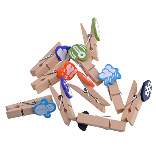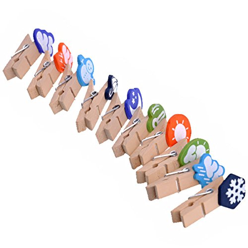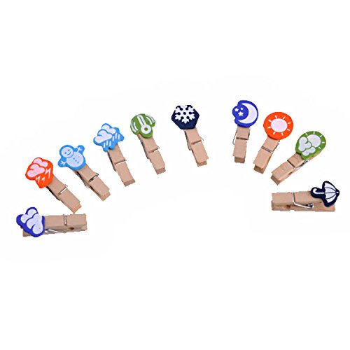 Material - Made of natural wood and metal spring.Exquisite appearance, the weather icon style makes the photo pins clip looks sweet