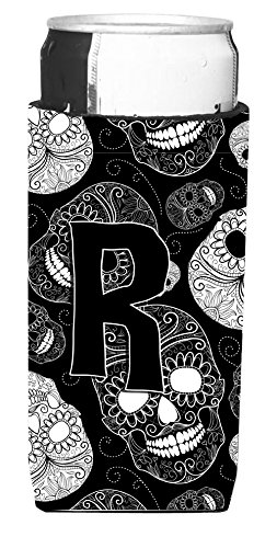 Letter R Day of the Dead Skulls Black Ultra Beverage Insulators for slim cans CJ2008-RMUK