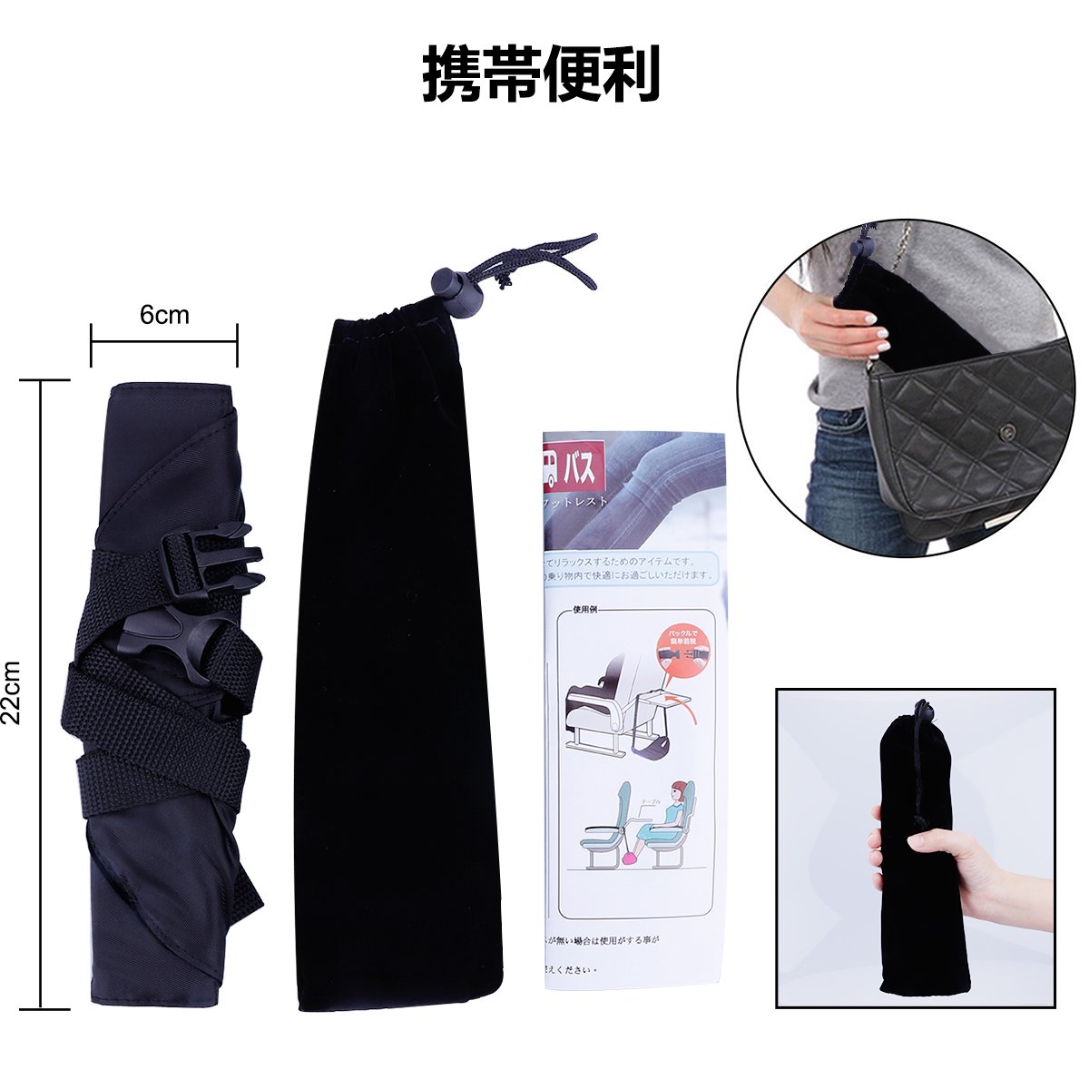 Folded and put in the storage case: 22 x 6 x 2 cm, bags brought into the cabin will not get in the way.