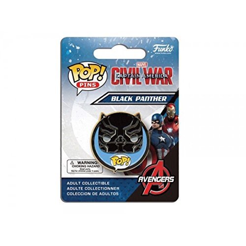 Studio : Alliance Entertainment Publisher : Alliance Entertainment Author : FUNKO POP PINS: CIVIL WAR - BLACK PANTHER Binding : Toy Product Description Funko grows the Pop! family with pins! This Captain America: Civil War Black Panther Pop! Pin features the King of Wakanda, done in Pop! Vinyl style on a metal pin. Pin measures about 1 1/2-inches in diameter and come packaged bagged and on a cardback. 0