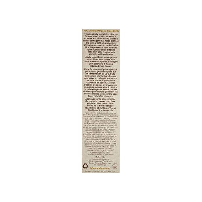 원본상품명: ジョンマスタ?オ?ガニック ベアベリ?オイリ?スキンバランシングフェイスウォッシュ 177ml