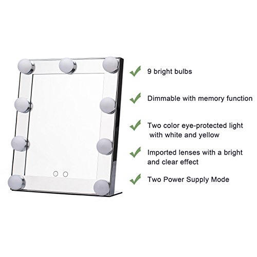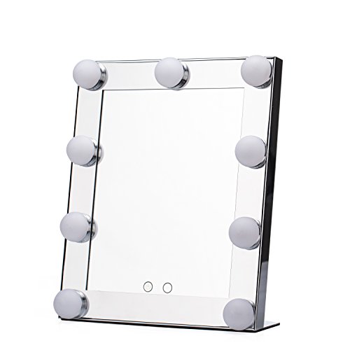 LED 9 Bulbs Vanity Lighted Hollywood Makeup Mirror with Dimmer Stage Smart Touch Screen desktop cosmetic Mirror &Two Power Supply Mode Batteries not Included--Adjustable Brightness (silvery)