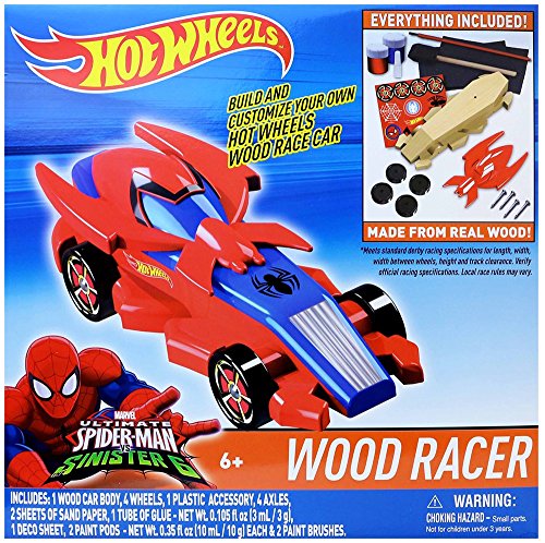 -. Feature : Made from real wood, this set includes everything you need to build and design your own car / Set includes: 1 wood car body, 4 wheels, 4 plastic accessories, 4 axels, 2 sheets of sand paper, 1 tube of glue, 1 deco sheet, 2 paint pods, and 2 paint brushes / Meets standard derby racing specifications for length, width, width between wheels, height and track clearance. Verify official racing specifications. Local race rules may vary / For ages 6+