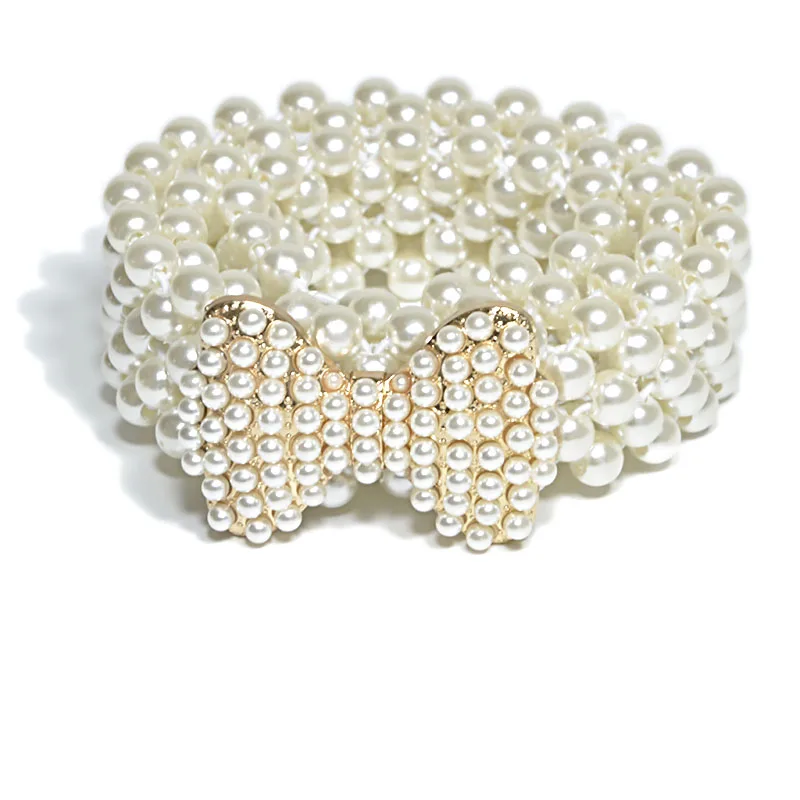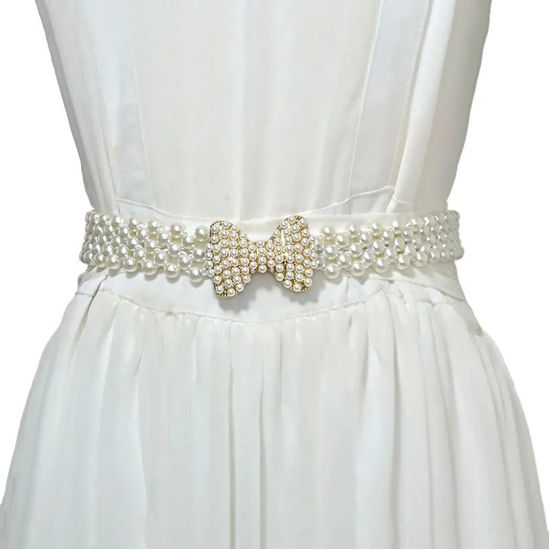 Element: Buckle rhinestone inlaid pearl decorative elastic wide belt