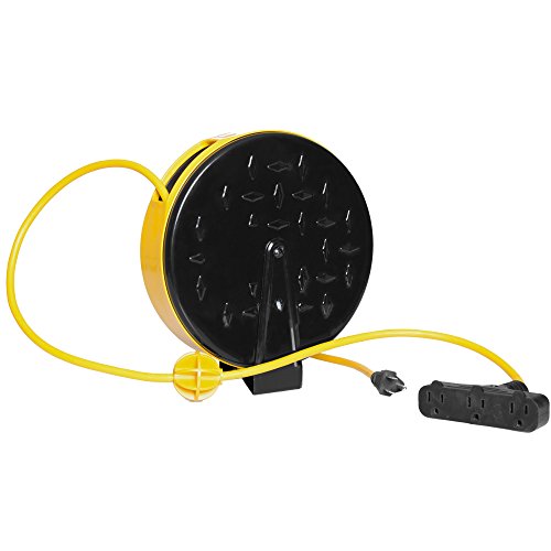 30Ft Retractable Extension Cord Reel with 3 Electrical Power Outlets - 16/3 Heavy Duty Yellow Cable - Perfect for Hanging from Your Garage Ceiling