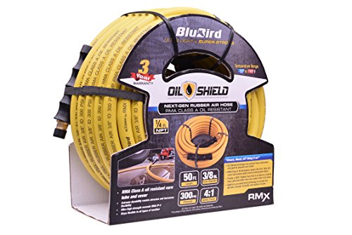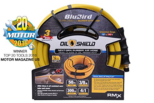 BluBird Oil-Shield: 3/8" x 50' RMA Class A Professional Rubber Air Hose: The Lightest & Strongest Oil Resistent Hose w/ 3 Year Warranty