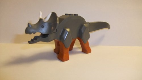 -. Title : Lego Animal Minifigure: Classic Dark Gray Triceratops with Dark Orange Legs